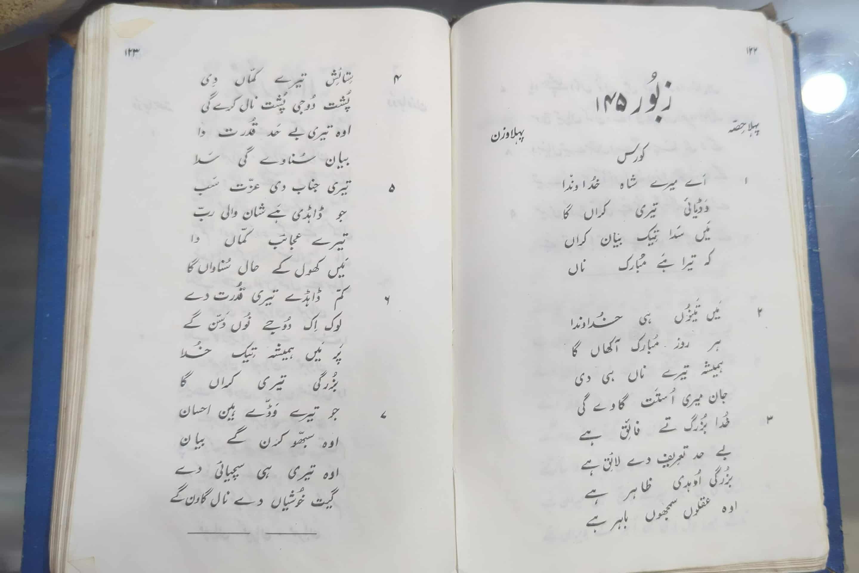 The most popular Zaburs/Psalms are: Zabur 9 “Daim Yahowah Ya Raab,” 18 “Appy Upro hath wadh k,” 24 “Rab Khudawand Badshah,” 45 “Sun ai bati tu ai soch ley,” 51 “Fazal Naal Aye Raab,” 121 “Akhiyan Chukna Haan,” and 139 “Khudaya Teri Rooh to mae.” Many of these psalms are ascribed to specific moments, such as the opening and closing in services or weddings and funerals. To praise, lament, and meditate. Psalms also remind the Pakistani Christians of Lord’s protection and judgment amid their suffering.